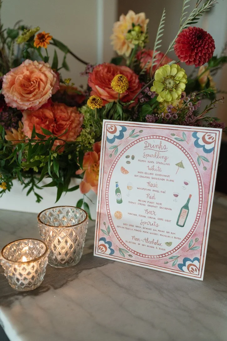 Mary and Anthony’s incredible Rome wedding. The invitation included an illustration of the venue, Villa Miani, a fun map of Rome, details card with a view from Hotel de la Ville and colourful envelope liner.